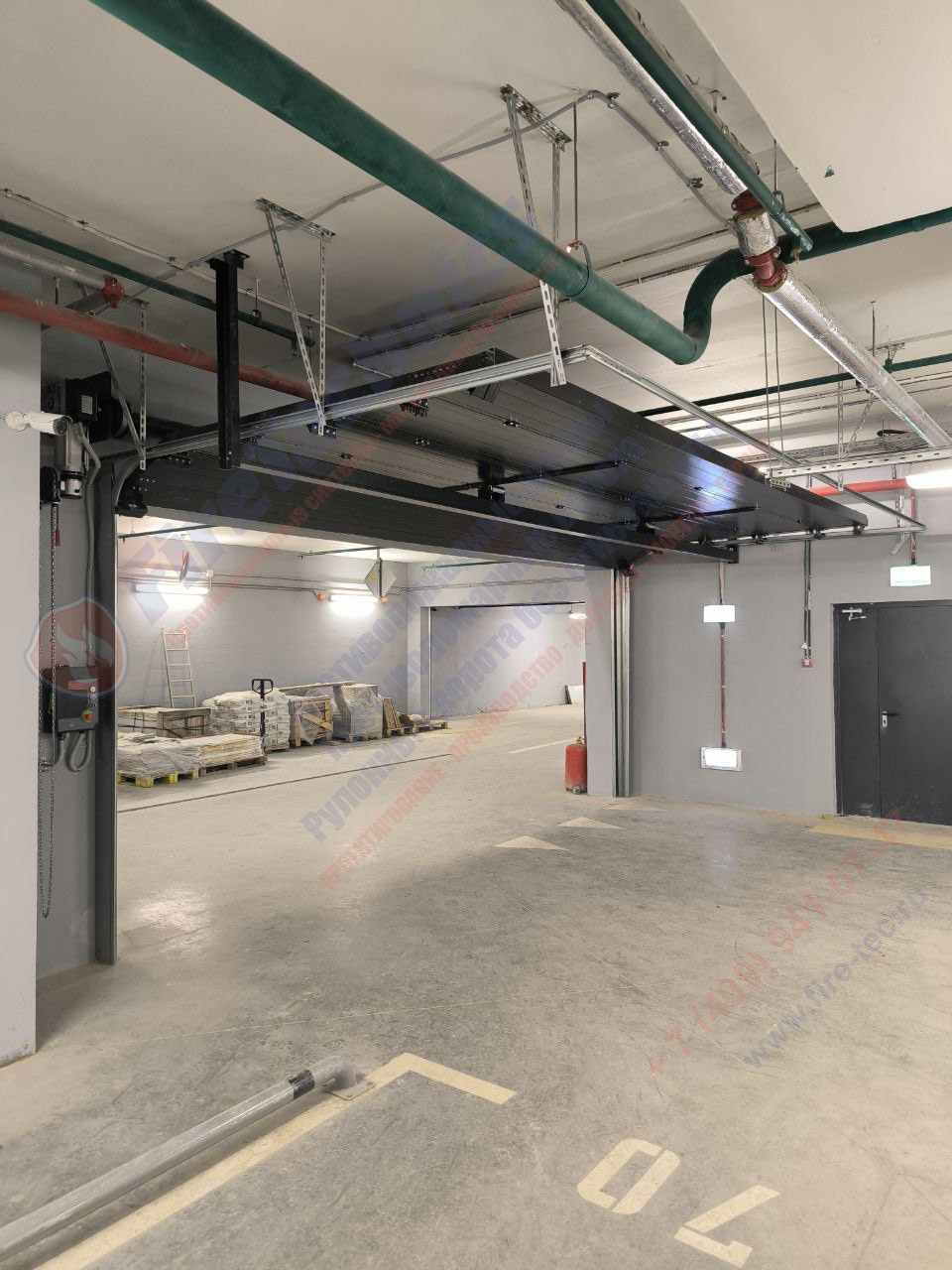 //Секционные противопожарные ворота FireTechnics-S EI60 в паркинге ЖК